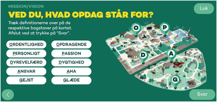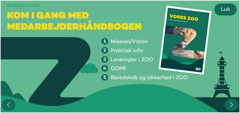 For at gøre denne viden let tilgængelig og mere engagerende end en traditionel medarbejderhåndbog, ønskede Zoologisk Have at udvikle et digitalt e-learningkursus, der kunne formidle de vigtigste informationer på en levende og motiverende måde.